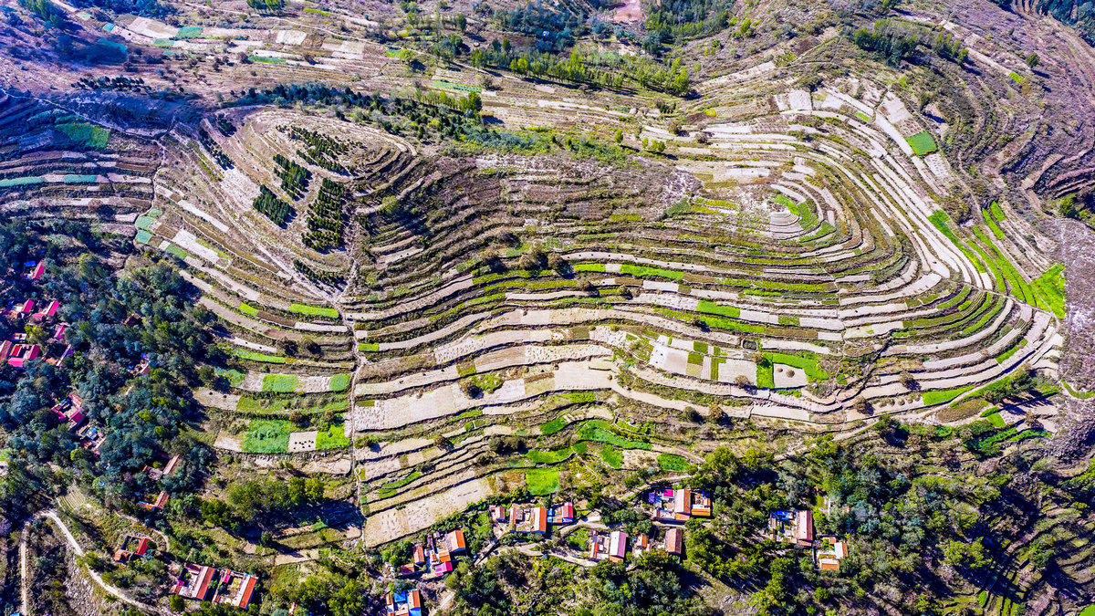 高庄镇天桥村的梯田尤为绝妙。秋日的农作物染上金黄、赭红与深绿,在光影交错间仿佛被自然之手调成了浓郁的油彩。秋风吹处,梯田如波光粼粼的阶梯,从山脚直铺云端。偶尔有农民在田垄上缓缓而行,更添几分田园诗意。正是这般景象,让高庄镇成为了摄影师们追逐的“天堂”。