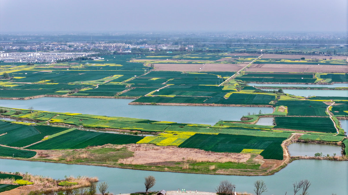 在安徽省阜阳市的广袤田野间,春天正以最绚烂的色彩绽放。金黄的油菜花如同一幅幅金色的织锦,与绿油油的麦苗相互交织,粉墙黛瓦的村落点缀其中,房前屋后、河流两岸,一片片金橙橙的油菜花构成了一幅醉人的田园风光。