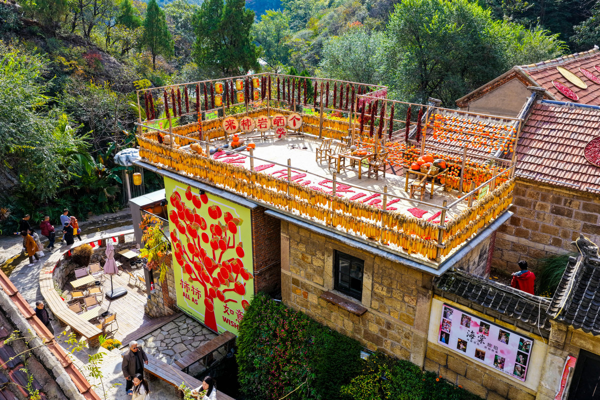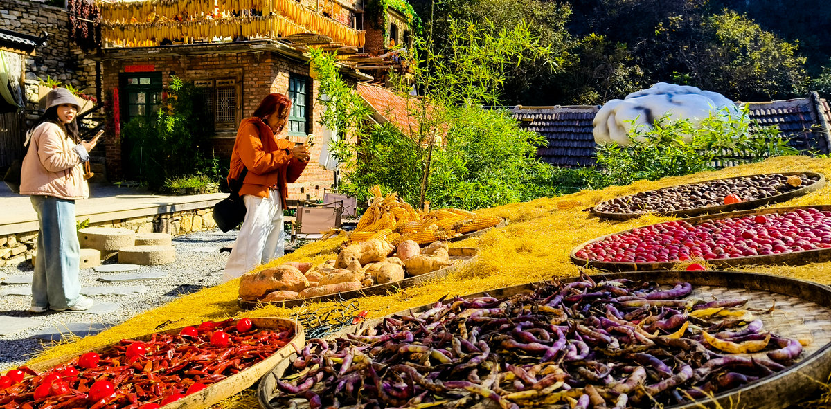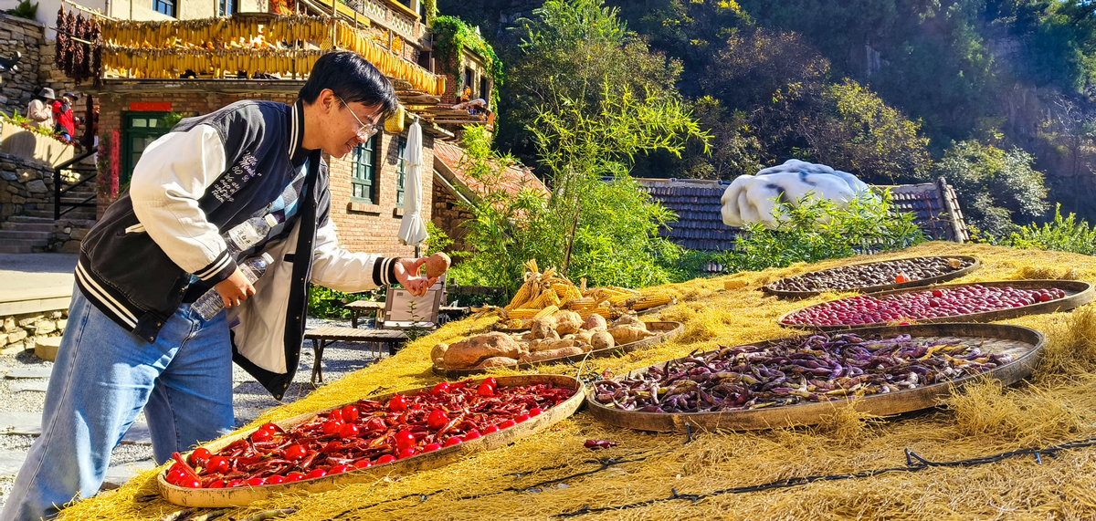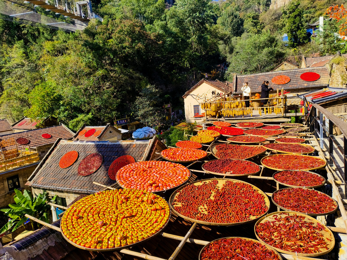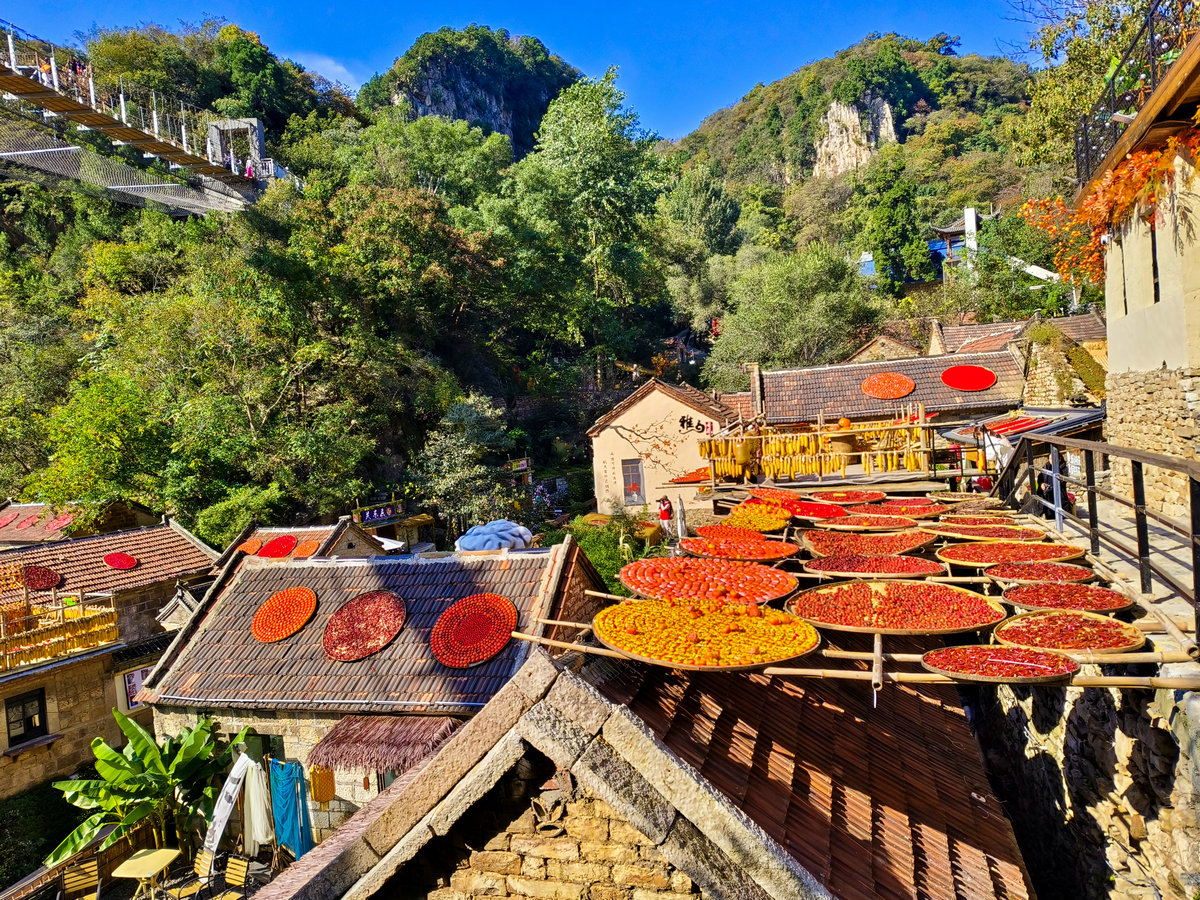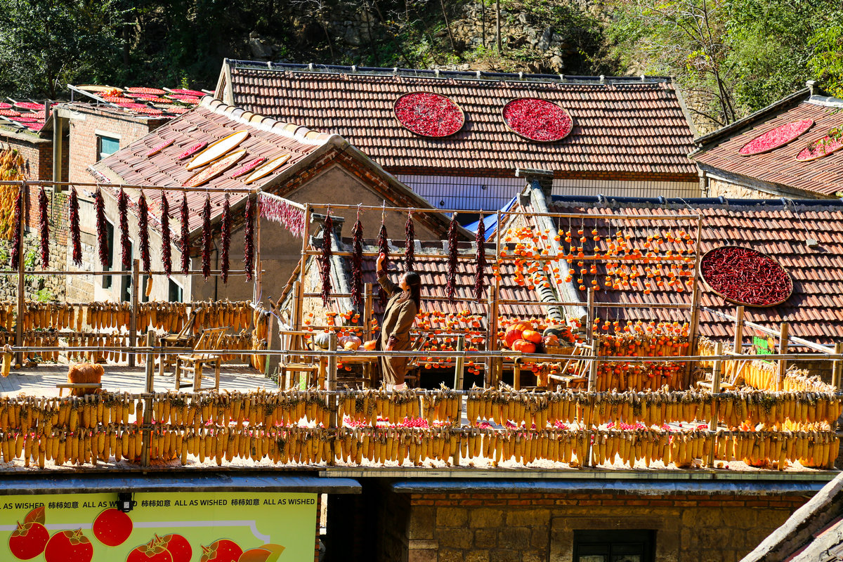 回到游客中心的停车场,抬头凝视四周的山石和从大山缝隙中流淌出来的山水,我忽然读懂这晒秋的深意——晒的不只是五谷,更是日头。 把易逝的光阴晒成耐存的滋味,把山野的馈赠化作越冬的底气。带不走一枚柿子半串椒,但那幅用山峦作画布、以生活为笔墨的《晒秋图》,早已在心头装裱成卷,每次展开都是扑面的暖意。(张子秋/图文)