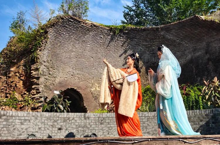 古窑是历史的见证,仕女是古典文化的符号,摄影人是现代的记录者。三者共同构成了一场跨越千年的对话。