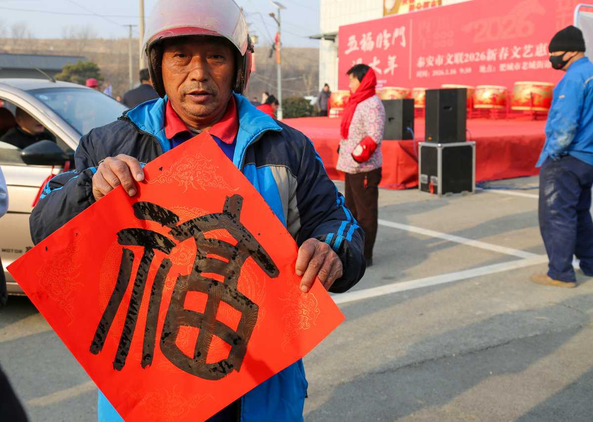 1月16日上午,“五福临门过大年·文艺惠民暖乡村”泰安市文学艺术界联合会2026新春文艺惠民系列活动启动仪式在肥城市老城街道大石关村隆重举行。此举旨在增强人民群众的文化获得感和幸福感,丰富春节期间的精神文化生活,营造欢乐祥和、喜庆热烈、团结奋进的节日氛围。