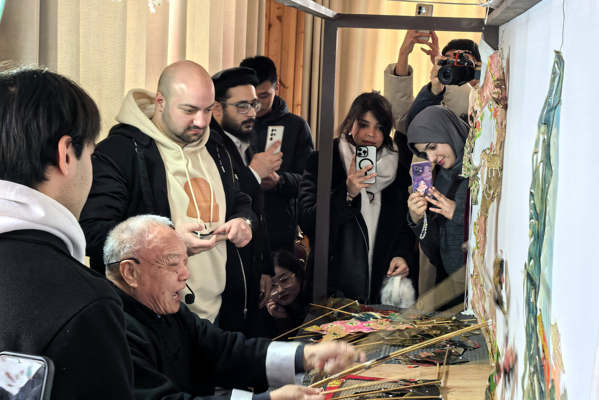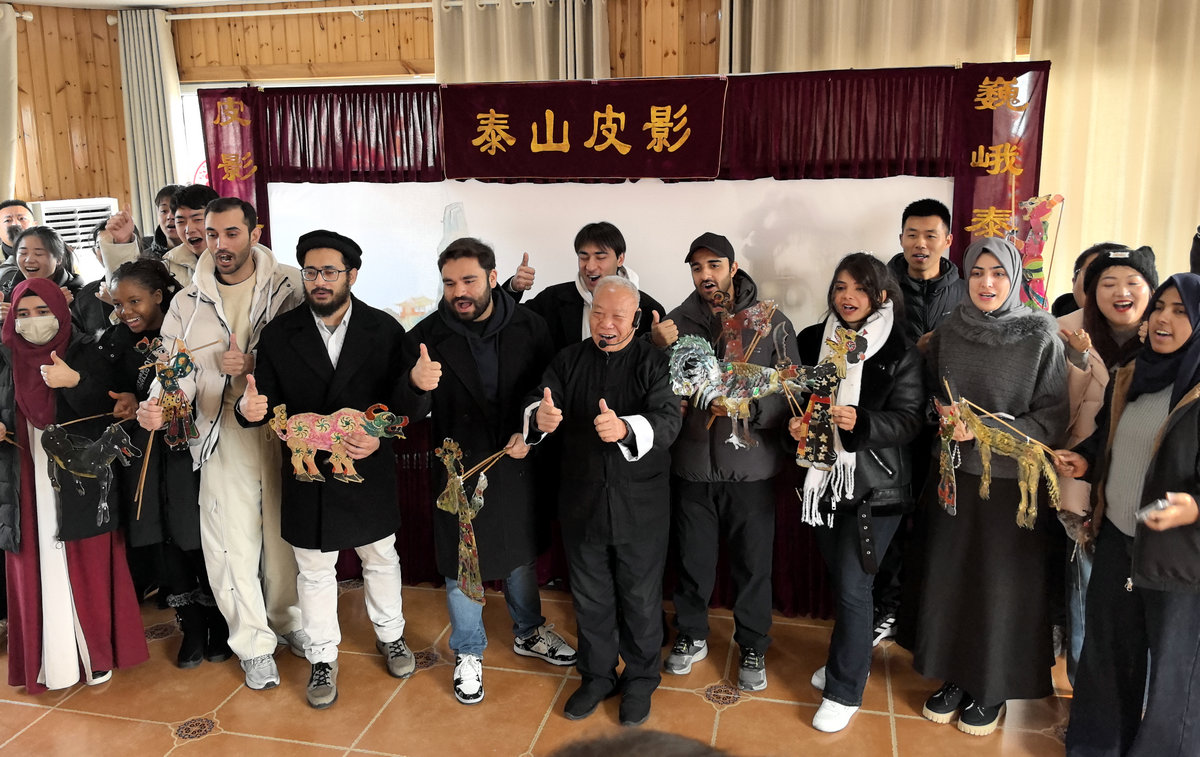 国家级非遗皮影戏传承人范正安的工作坊内,光影交错间演绎着东方美学。范老以“技艺讲解+经典展演+实践创作”三部曲,揭开皮影戏“雕、镂、刻、画”的匠心密码。随着锣鼓声响,《麻塔的由来》经典剧目上演,彩色影人在幕布后翻飞腾挪,引得留学生阵阵惊叹。