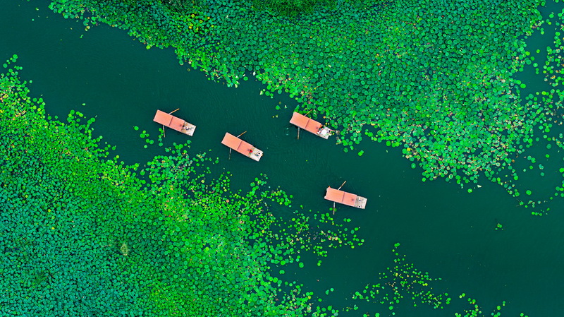 东平湖荷荡船影—许鹏