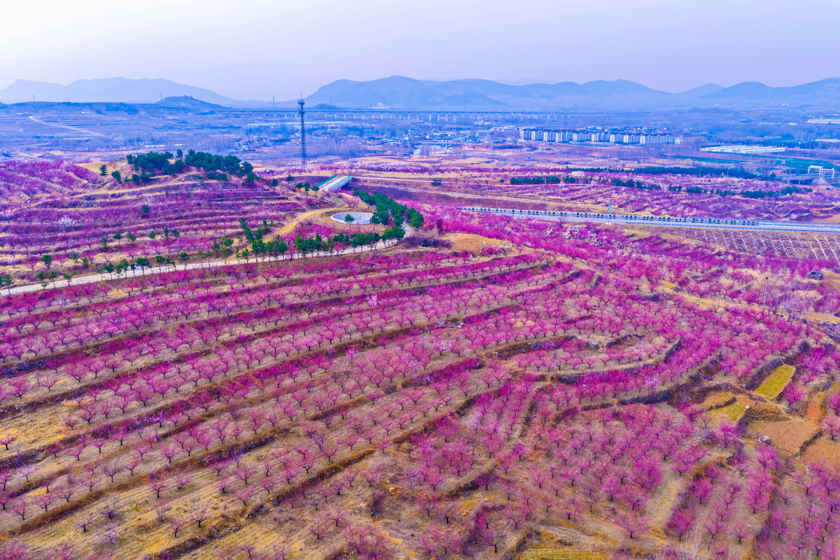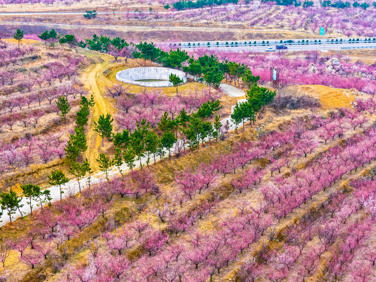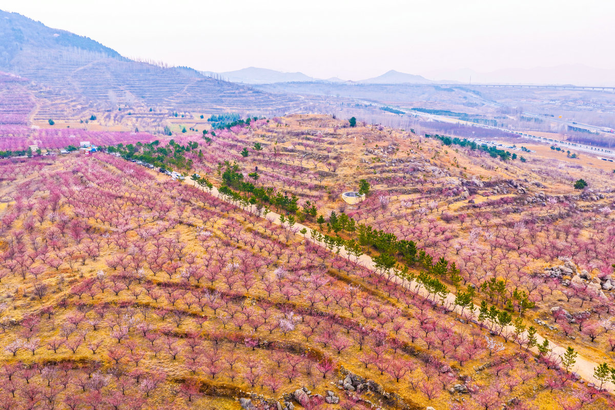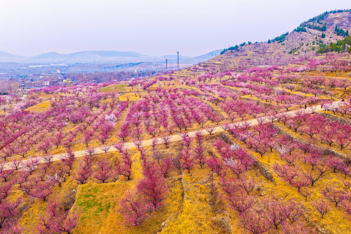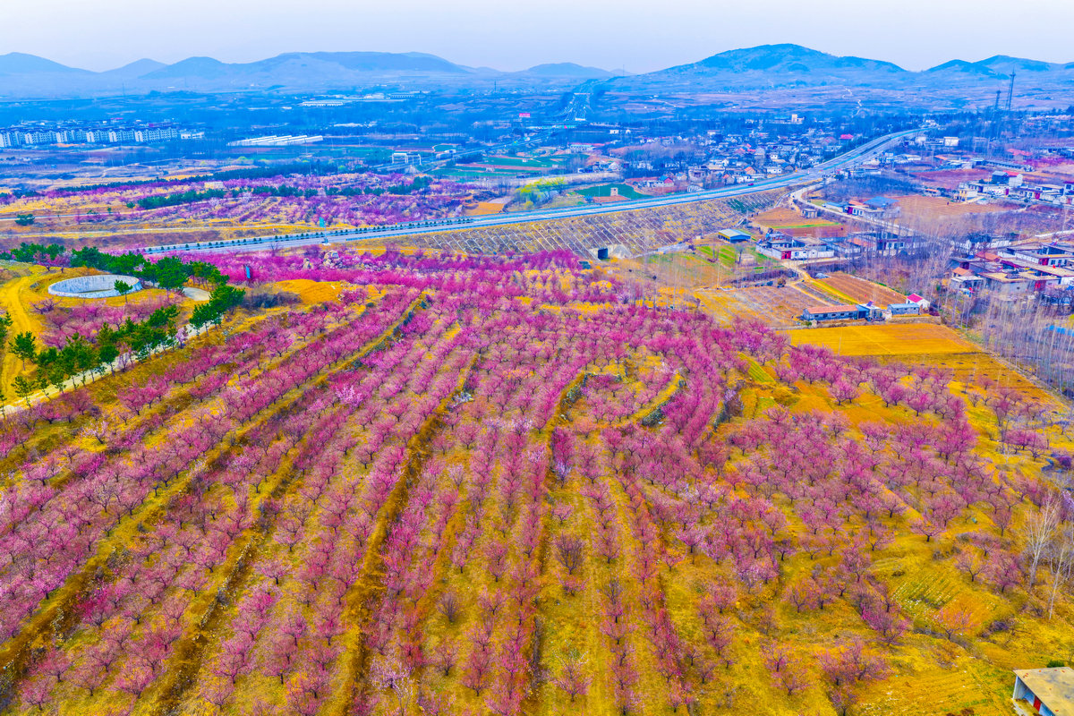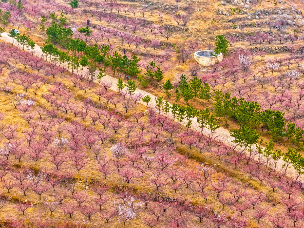 绿杨烟外晓寒轻,红杏枝头春意闹。3月14日,济宁市泗水县圣水峪镇土洞村的千亩杏花迎着春风次第绽放。不仅集中连片的杏林如粉色彩霞,漫山遍野,就连村民的房前屋后、层叠而上的梯田之间,也处处点缀着花儿怒放的杏树,将整个山村温柔地拥入一片绚烂的花海。
