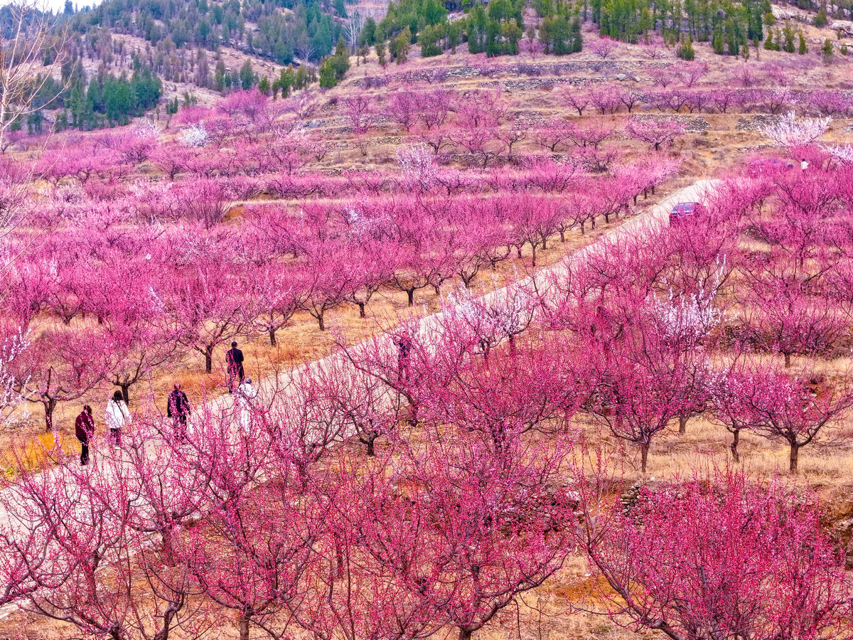 这漫山遍野的绽放,不仅吸引了众多游客前来踏春赏景,更承载着村民们对丰收的期盼——今日的繁花,正是明日甘甜杏果的序章。