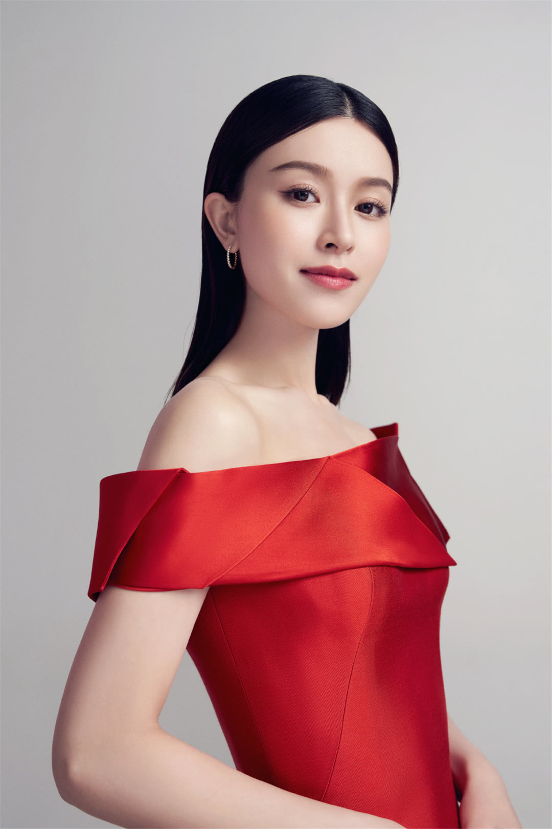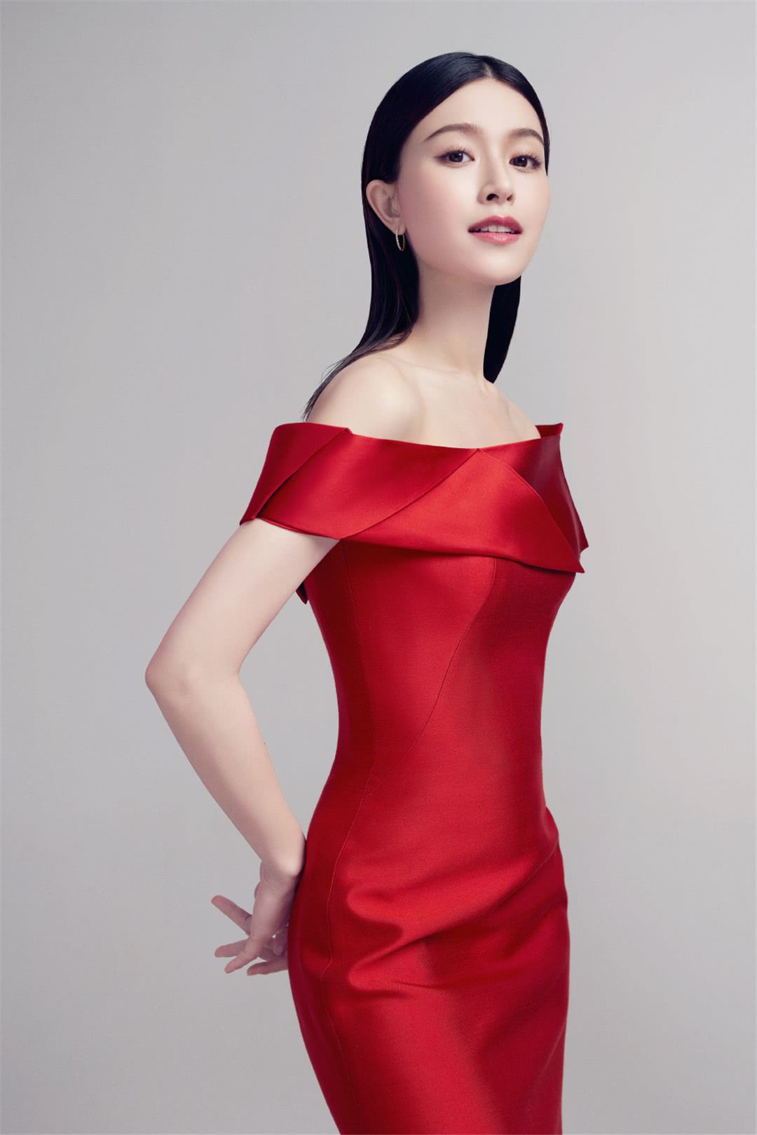 文咏珊发博晒图,身穿一字露肩红裙,鲜艳喜庆,微笑自信从容