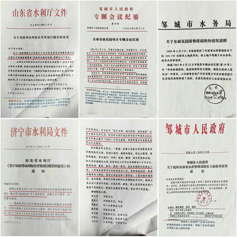2003年6月12日,6月16日,邹城市人民政府连续两次组织水利、建设、国土资源和西苇水库管理局等有关部门,召开东丽花园项目专题协调会议。