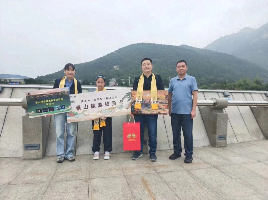 “一家人第一次来爬泰山,感受到了泰山的热情好客,也很荣幸孩子能成为今年第七百万名登泰山的游客。中华泰山,国泰民安!”徐睿彤的父亲徐新宇说。活动现场,徐睿彤收获了泰山神启跨维数字体验馆家庭体验卡、中华泰山封禅大典家庭体验卡,还获赠象征平安吉祥的泰山祈福带及泰山旅游终身卡,开启了与泰山的一份特殊缘分。