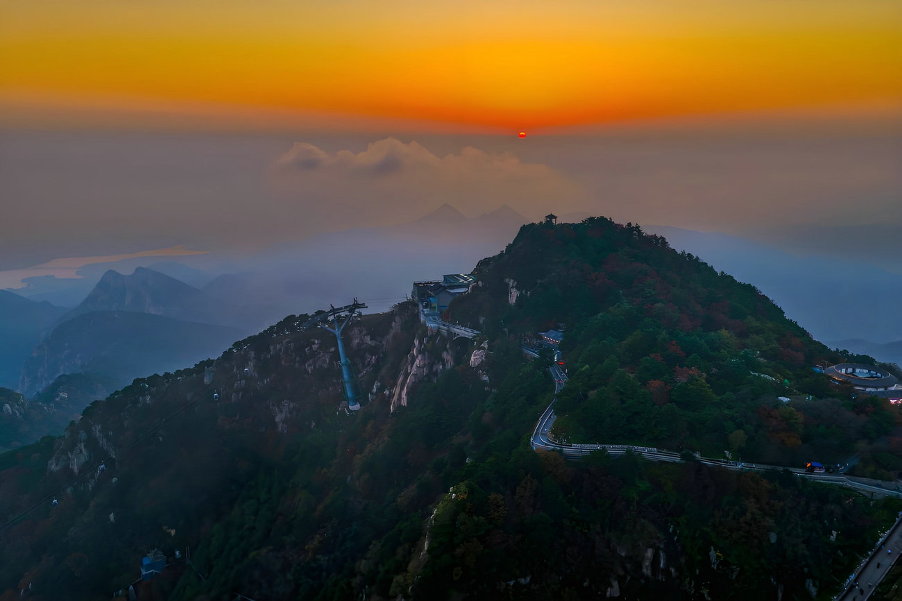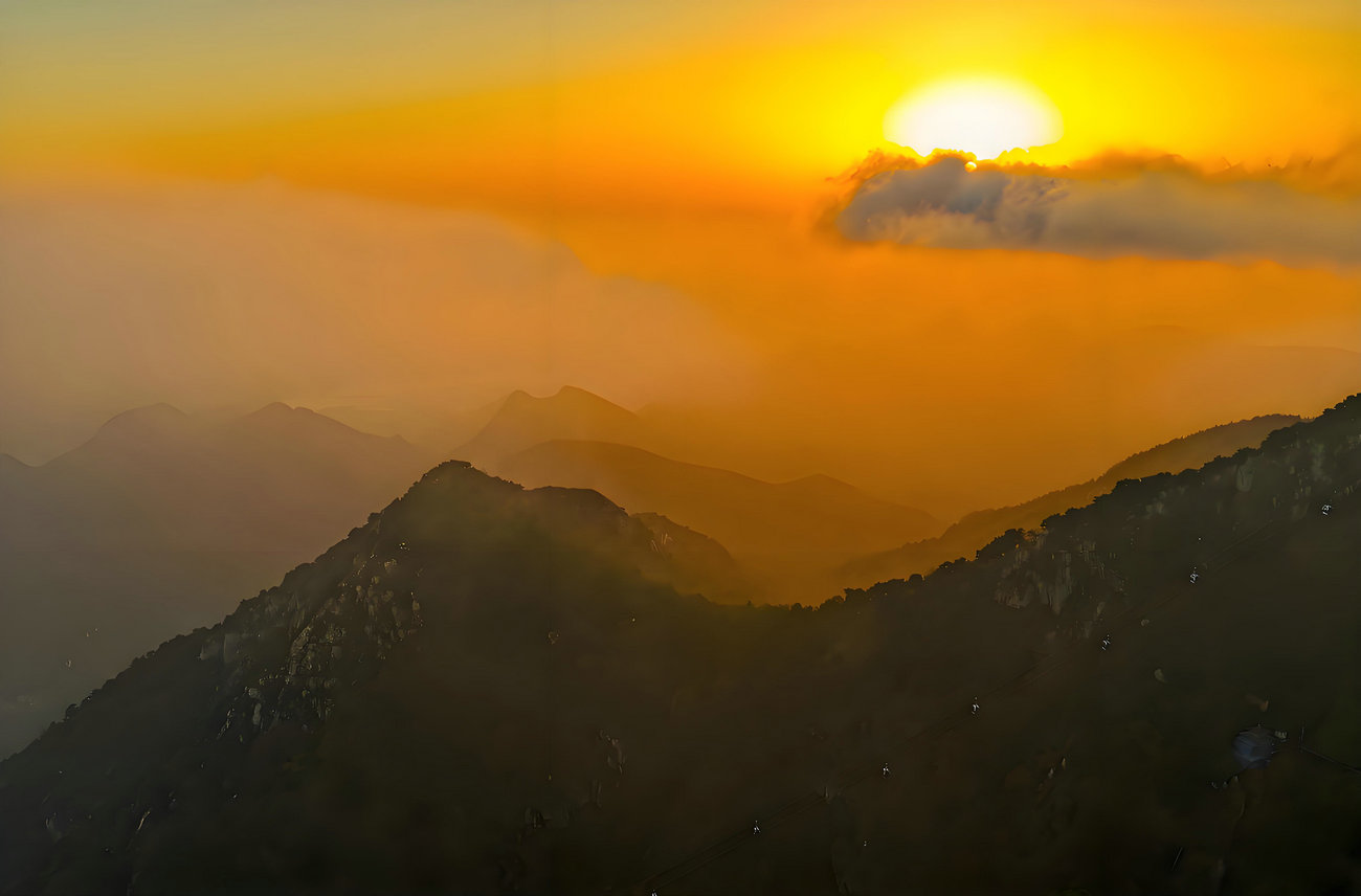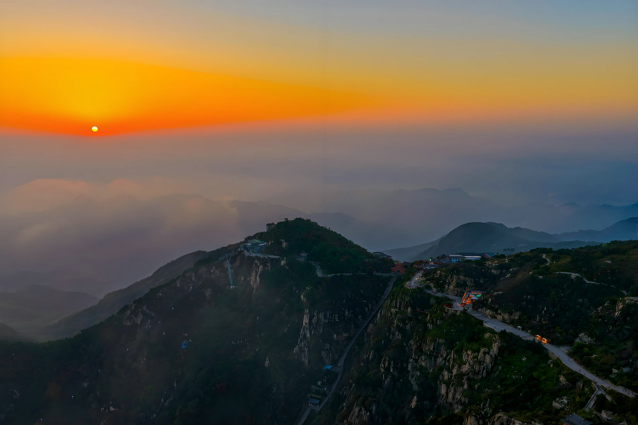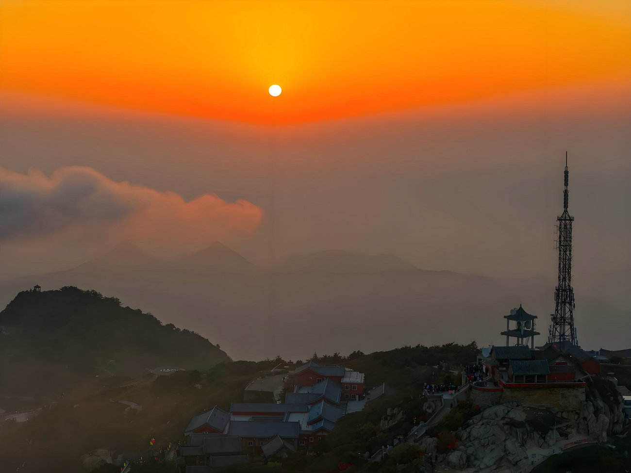 泰山日落,是一场天地联袂的盛大仪式。当夕阳西沉,云海披上金红,岱顶的黄昏展现出不同于日出壮丽的深邃之美。