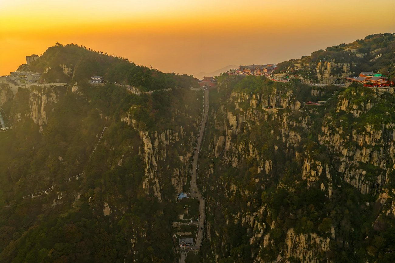 落日完全隐入云海后,霞光反而愈显绚烂。西方天际如火凤涅槃,燃烧着最后也是最辉煌的光芒。余光返照东岳,为十八盘镀上暖色,令南天门显露出白日里不曾有的温润轮廓。此刻方知:泰山最动人的时刻,不止在迎接新生之日,亦在礼赞圆满之终。