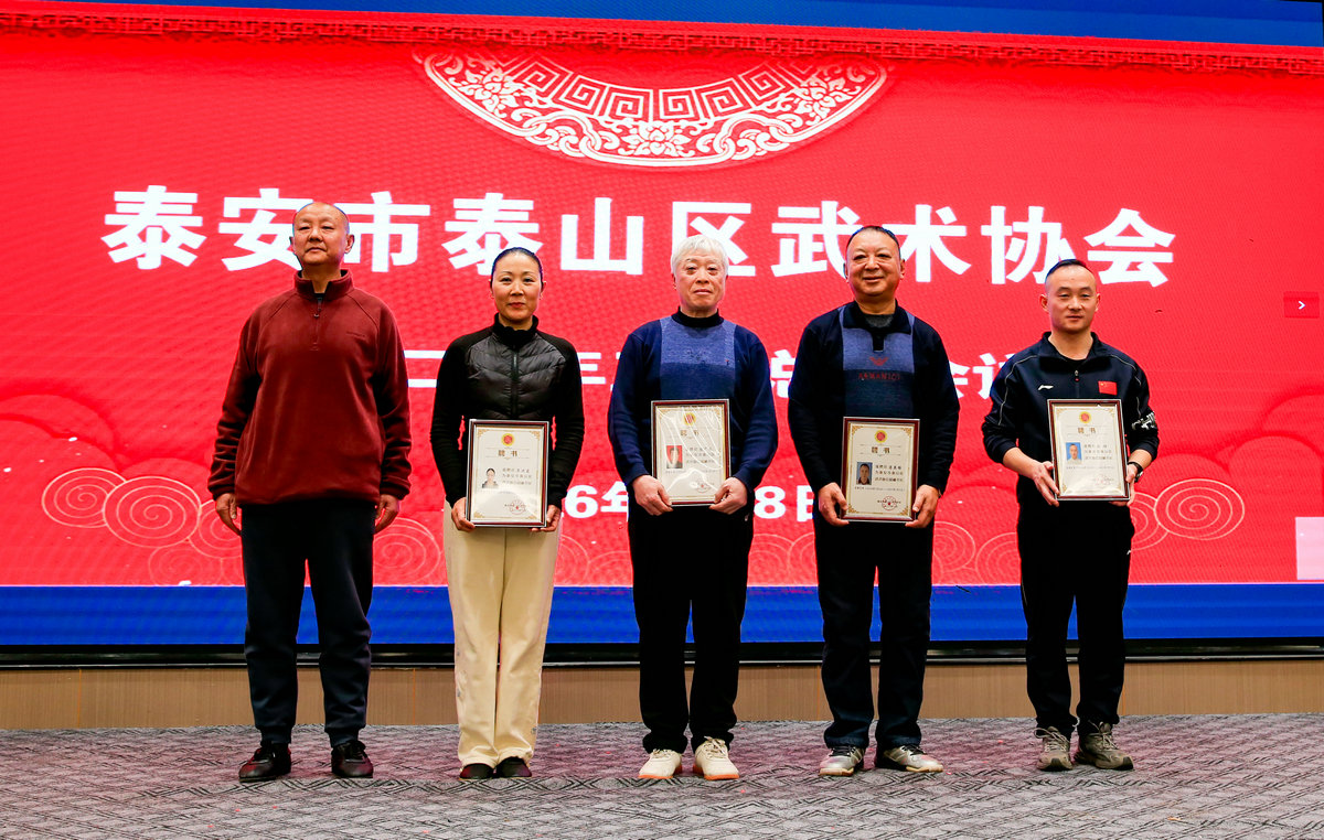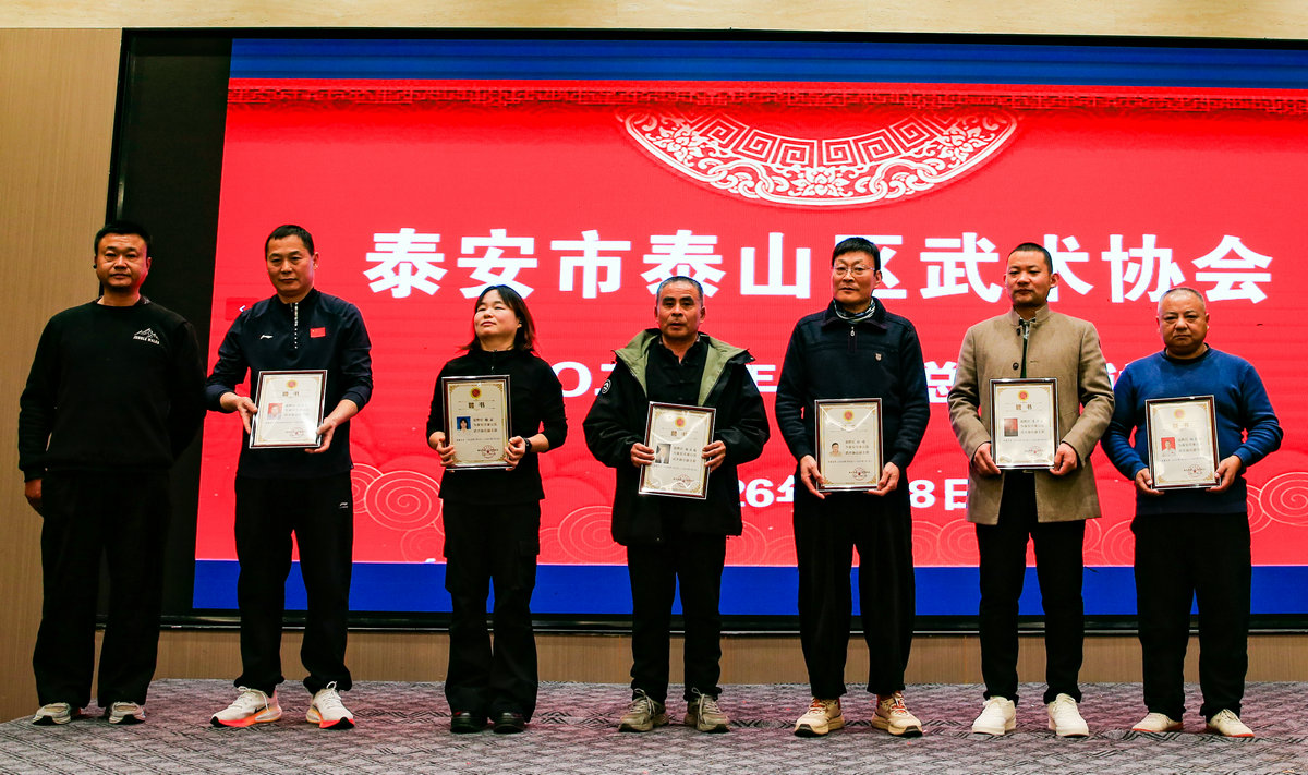 2026年1月8日,泰安市泰山区武术协会在年度总结大会上公布了2025年的骄人成绩:在全国各类武术比赛中,协会共斩获奖牌125枚,其中金牌49枚、银牌38枚、铜牌38枚。尤其值得一提的是,协会会员刘祥代表山东省参加第十届世界传统武术锦标赛,勇夺男子C组华拳、猴棍两项金牌,为国家赢得了荣誉。