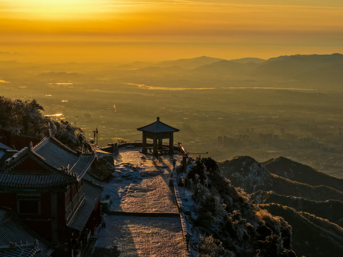 1月20日,雪后的泰山之巅迎来一场震撼人心的视觉盛宴,从清晨到日暮,阳光在山峦间流转,将整个天际晕染成深浅不一的黄色调,为冬季的泰山增添了别样的温暖与壮丽。