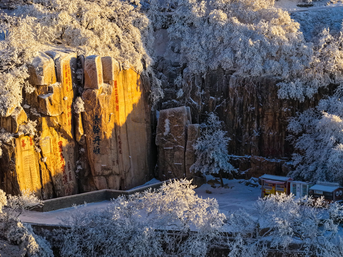 此刻,冷霜与暖光相织,古意与澄明共生,凝成一幅晴日岱宗图卷。