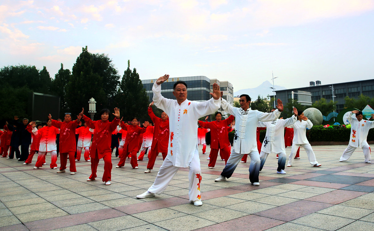 2025年9月30日清晨,秋风送爽,朝阳初升。为庆祝中华人民共和国成立76周年,弘扬中华传统武术文化,推动全民健身运动深入开展,泰安市泰山区武术协会在南湖公园隆重举行“喜迎国庆 武动泰山”武术展演暨全民健身活动。近百名武术爱好者齐聚一堂,以飒爽英姿和精湛技艺,为市民带来一场力与美的视觉盛宴,并以独特的方式表达对祖国的深情祝福。